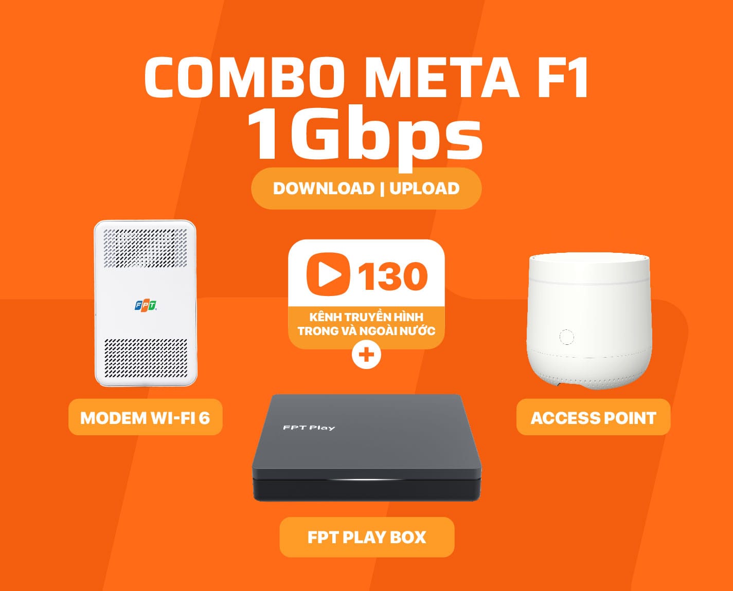 Gói combo được thiết kế để đáp ứng các nhu cầu đa dạng, mang đến tốc độ internet lên tới 1 Gbps, gần 130 kênh truyền hình đặc sắc, vùng phủ sóng Wi-Fi rộng khắp nhờ modem Wi-Fi 6 và thiết bị Access Point tặng kèm.